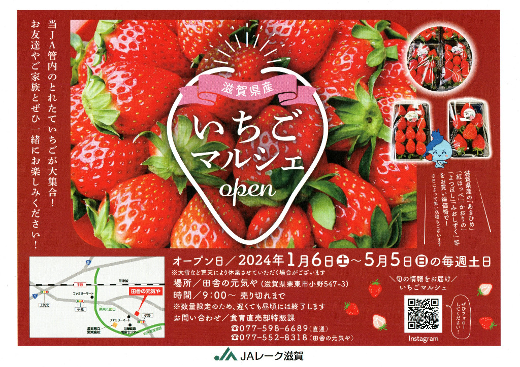 1月6日から「田舎の元気や」にてイチゴの販売が開始されます。