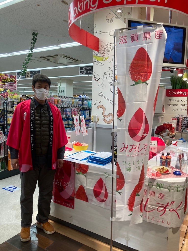 アルプラザ草津内のクッキングサポートエリアにて「みおしずく」の試食PRイベントが行われました。