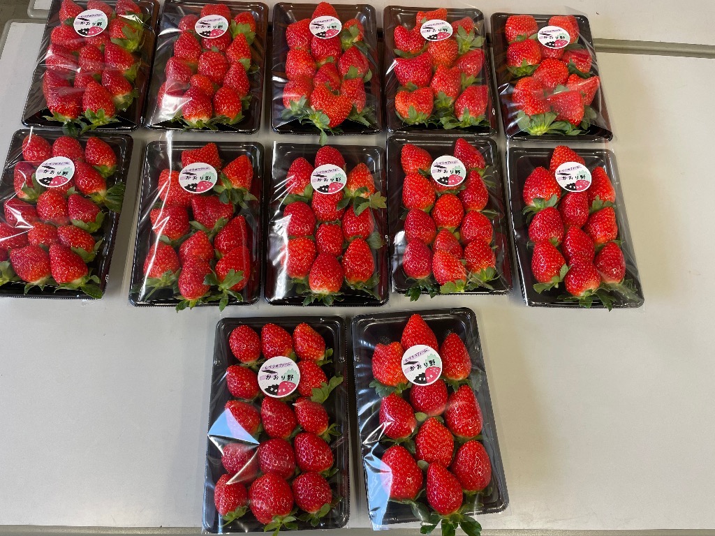 まずは、早生品種のかおり野のみ日量数パックにはなりますが、販売開始しておりますので、お問い合わせ下さい。