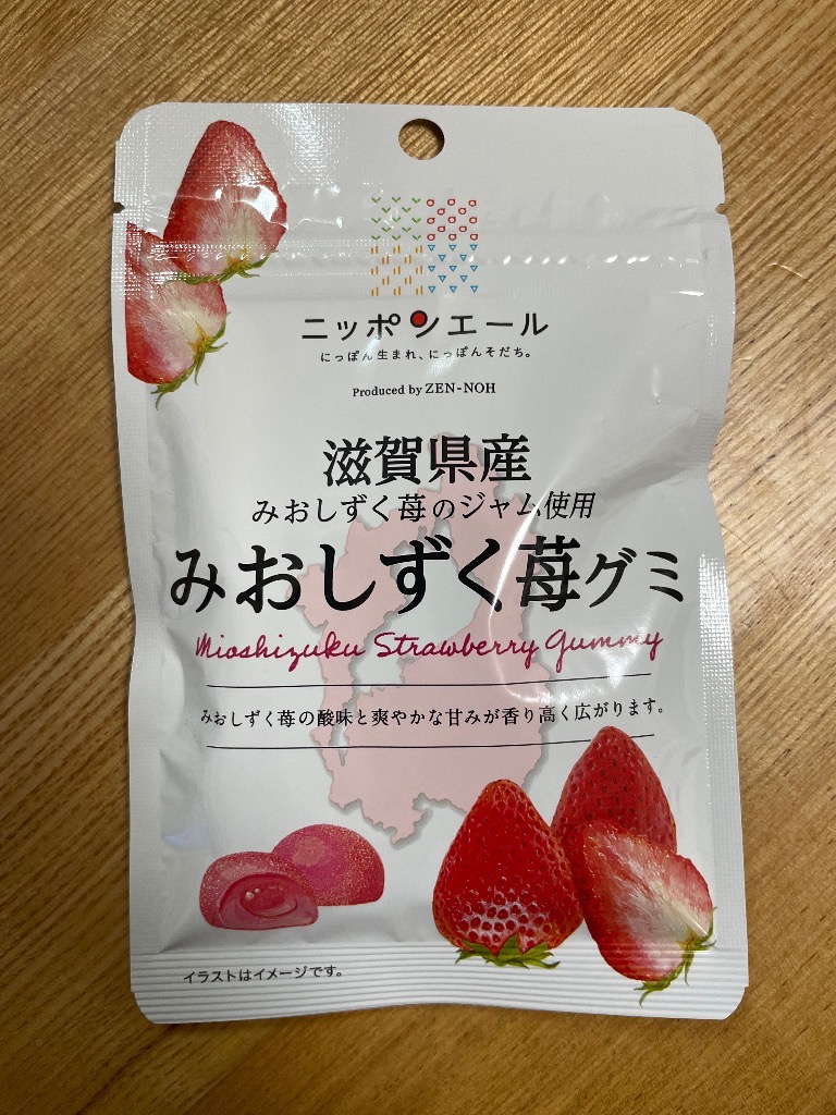 JA直売所、平和堂各店舗でみおしずく苺グミが販売されています。